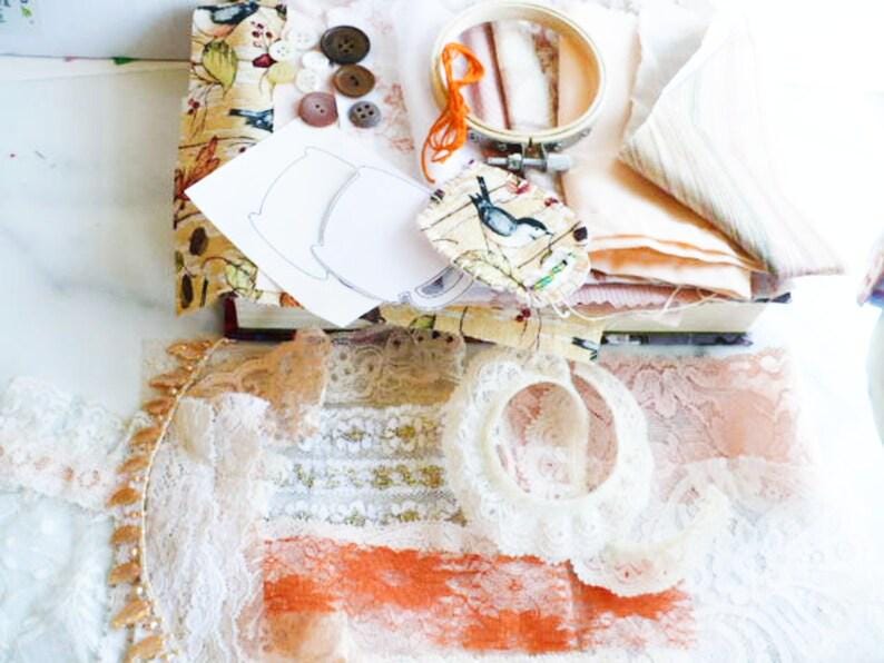 • Complete kit with all supplies needed to embellish the cover and assemble the inside with fabric and felt