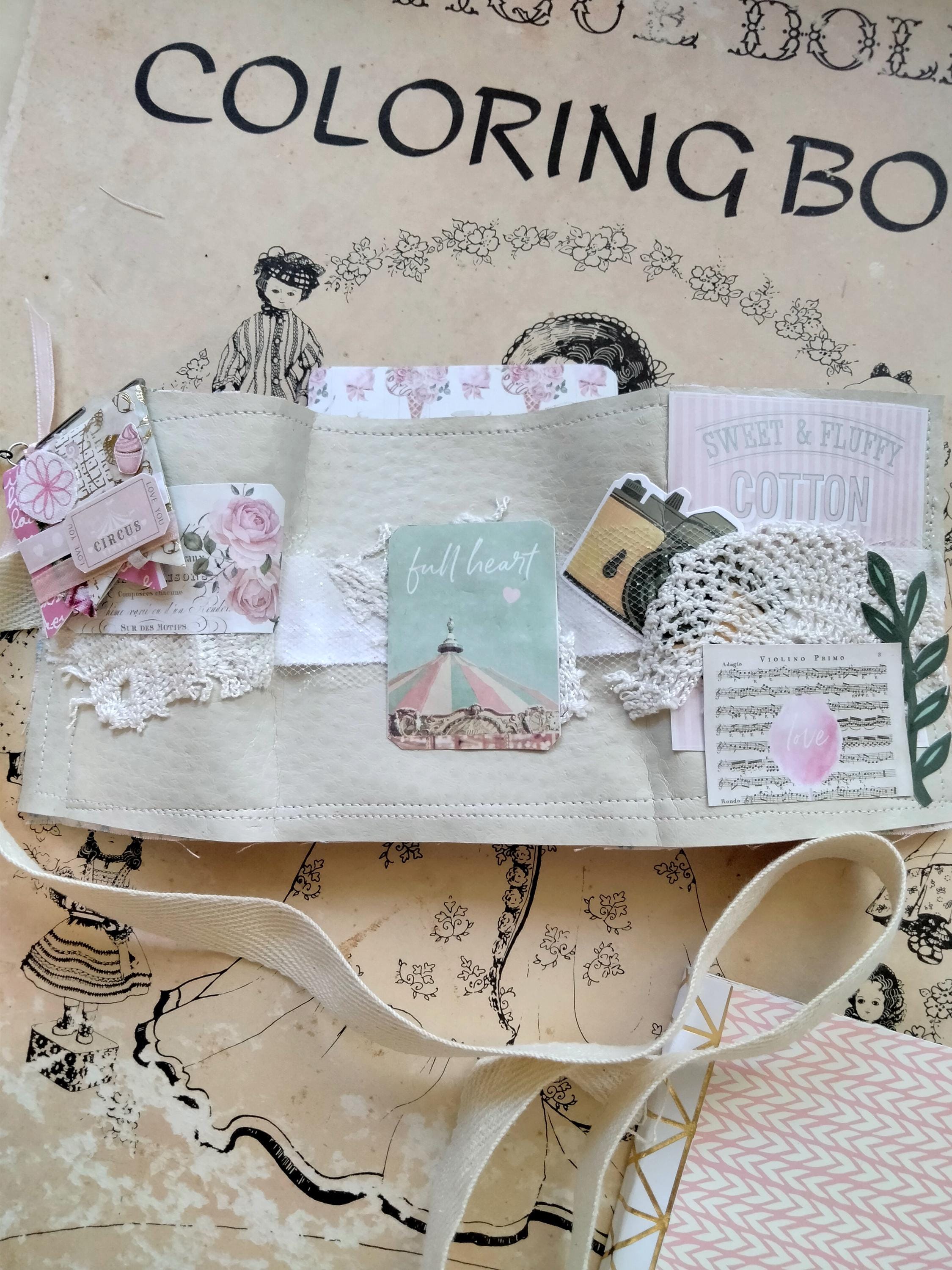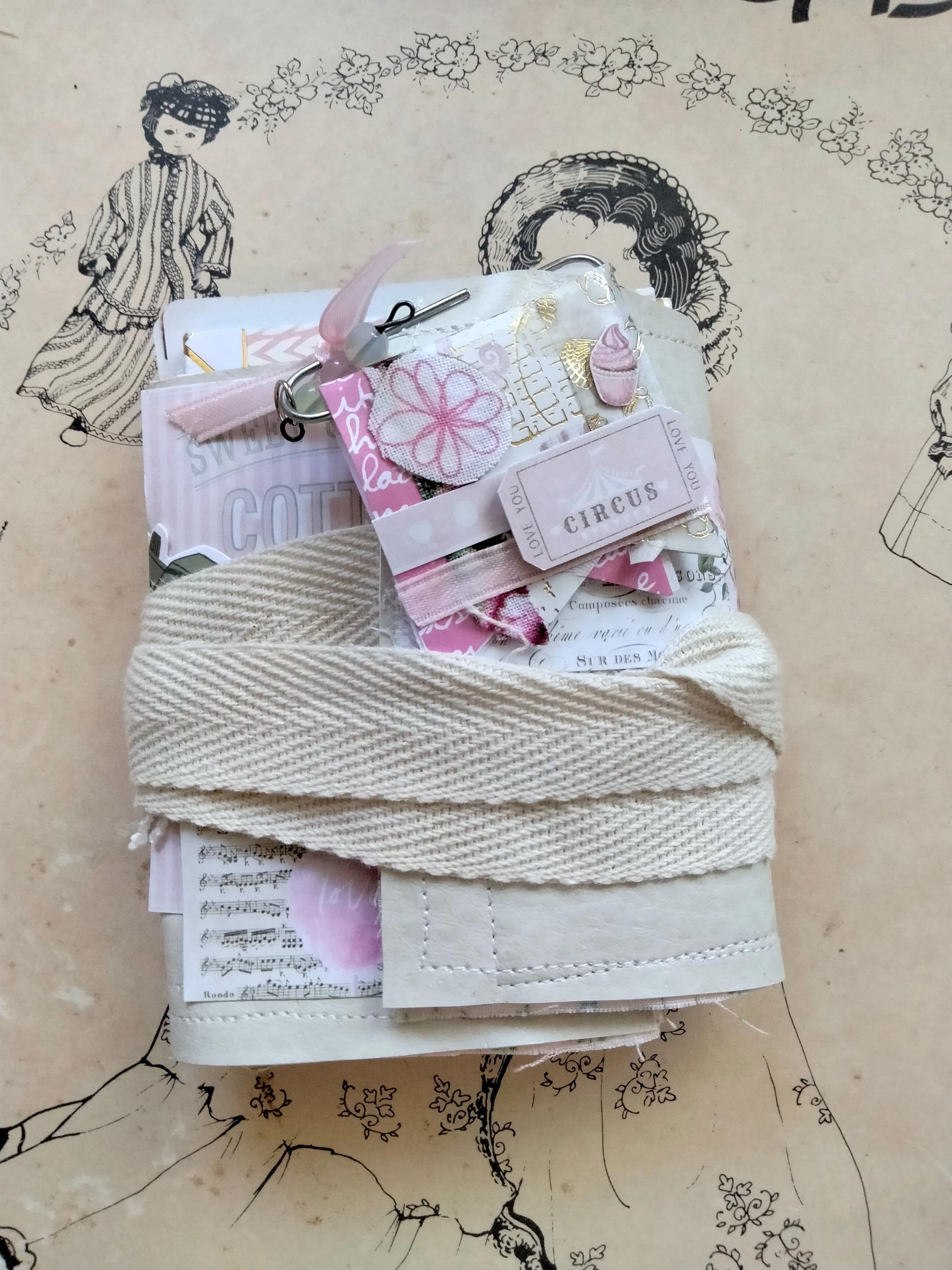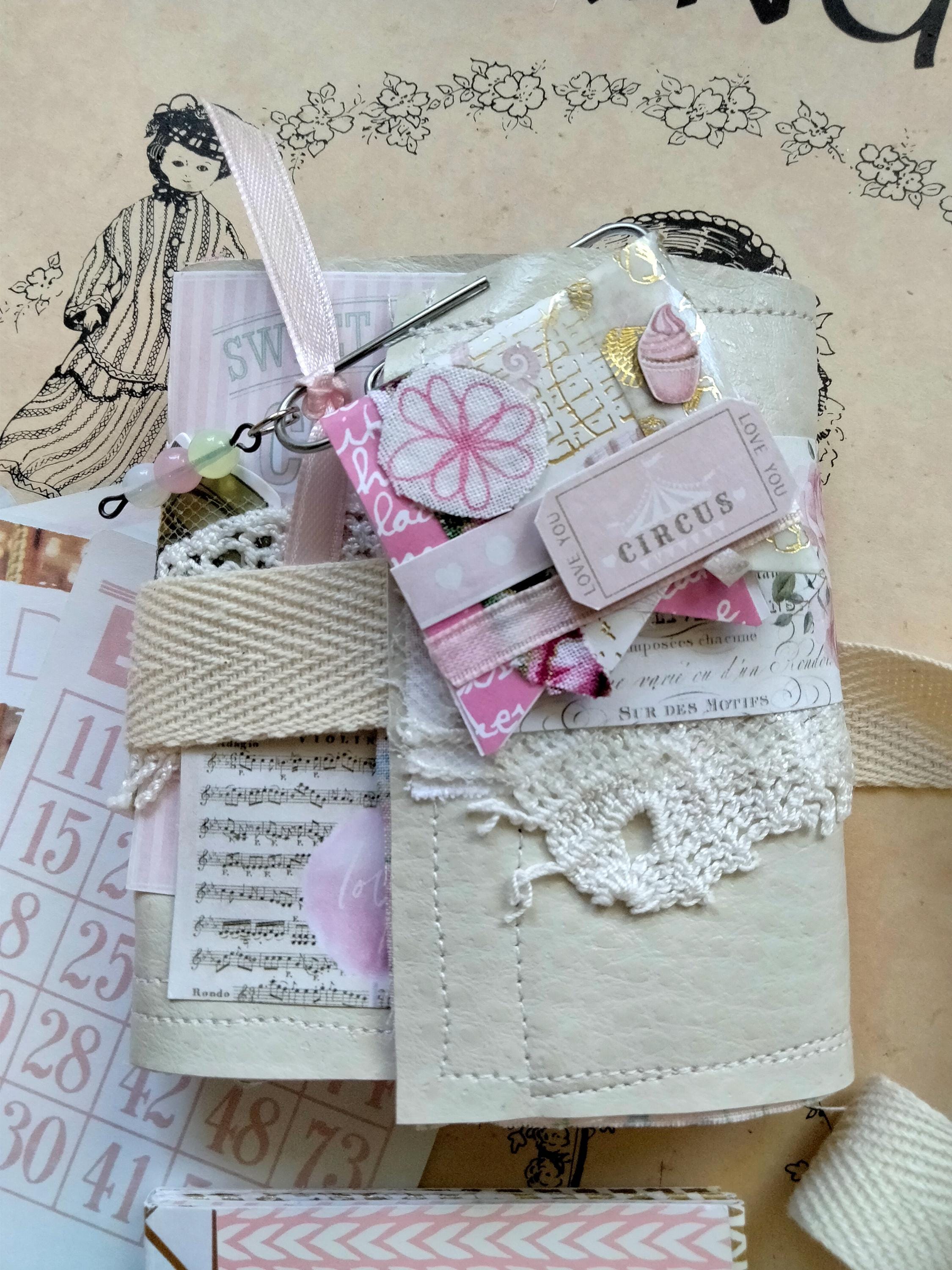 This handmade junk journal with a cute spring paper clip bookmark is flowing with tons of yummy handmade tags and tuck spots. This unique style embellishments starting with the cover and ending with the bookmark.